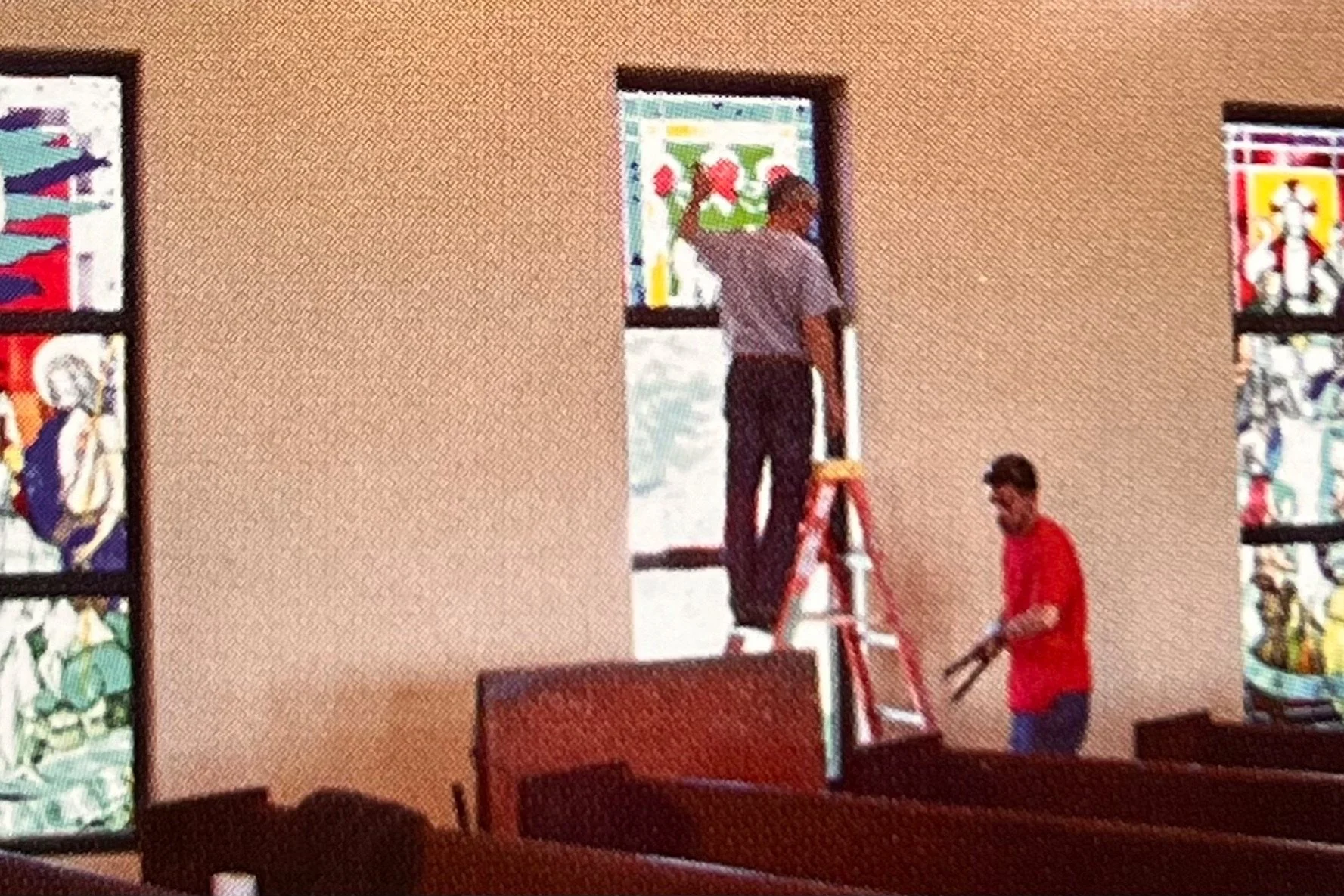 During our fifteen months at the Alamo Storage Center, Father Davich appointed Lew Joseph as the Administrative Assistant, and the two searched out an architect to begin preparations for the new church. We were blessed with our Architect John Piers who designed and day by day supervised the building of the new parish center.