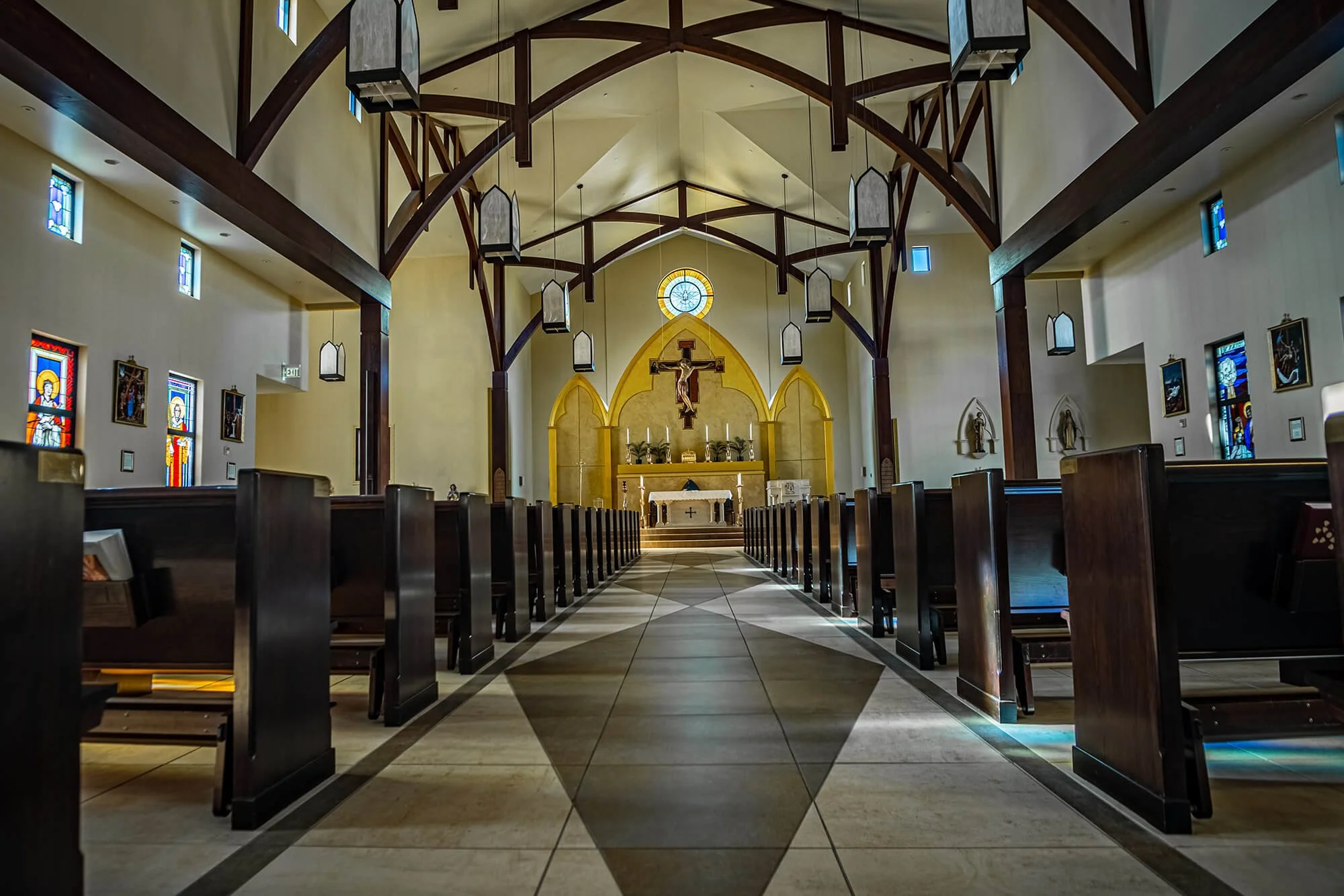 The vision of founding Bishop, Joseph Lennox Federal, and founding pastor, Msgr. George Davich, began in 2007 for phase II and III. Phase 1 was to “Build the right church as soon as practically possible” (Father Patrick Elliott). The vision was to have a 500 seat church optimized for good acoustics and opportunity for future growth. The process started by selecting a Steering Committee from a broad cross-section of parishioners. Next, a feasibility study was conducted using a professional campaign company with guidance from the diocese. It was determined that 84% of the parishioners desired a new, larger church and began to give estimated pledges. Phase 2 was selecting an architect to create a unified vision of the “Right Church”. During this process the Steering Committee maintained a strong fiscal review process reporting to the community, and Dioceses. Phase 3 was retaining a capital campaign using Walsh & Associated with over 70 members of the parish involved in the campaign and the entire parish committed to a strong prayer-based model. We raised the goal amount while exceeding our DDD goal at the same time. We selected our builder, R&O, and adjusted our building plan to match the current funding.